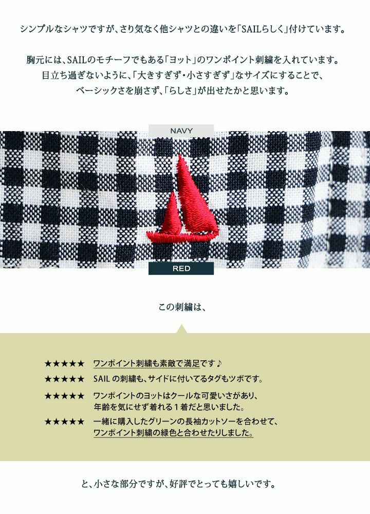 他の画像を見る 1枚で着られる「ゆとり」と、「アイロン要らず」の日本製チェック。 (セイル) SAIL 半袖 シャツ ギンガム チェック柄 プルオーバー風 日本製 綿100% 刺繍入り 販売価格 ¥ 6,050 税込 在庫切れ 詳細を見る お気に入りに登録する