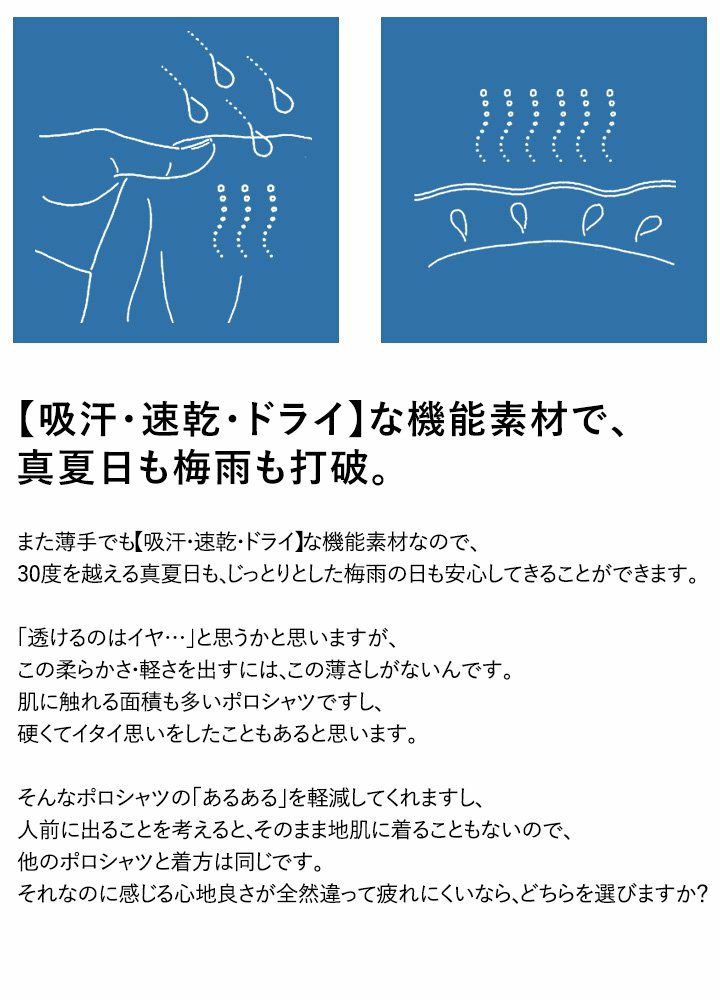 他の画像を見る 「着る、日焼け止め」。しかも、「涼しく、ドライ」。 (アリステア) ALISTAIR ポロシャツ 「吸水 速乾 ドライ シルキータッチ」 紫外線防止 UPF50+ 刺繍入り 販売価格 ¥ 4,290 税込 在庫切れ カートに入れる お気に入りに登録する
