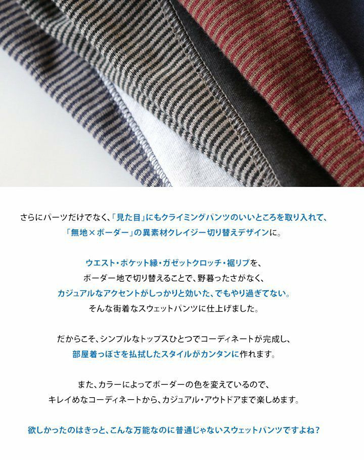 他の画像を見る 穿くほどにクセになる、「万能なのに普通じゃない」スウェットパンツ。 (トーン) TOneontoNE スウェットパンツ クライミング 『とび裏毛 ガゼットクロッチ』 ボーダー 切り替え 販売価格 ¥ 5,390 税込 在庫切れ カートに入れる お気に入りに登録する