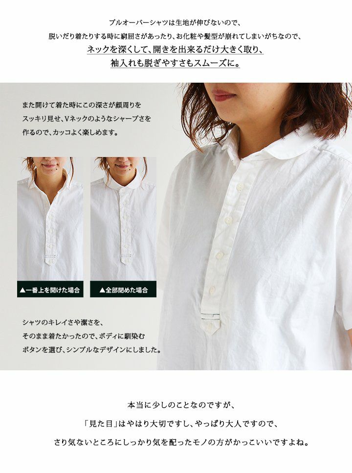 他の画像を見る すぽっと「着痩せ」で、品良く「透けない」。 (セイル) SAIL 半袖 シャツ プルオーバー 丸衿 【日本製】綿100% ソフト オックス 無地 ポケット付 販売価格 ¥ 7,150 税込 在庫切れ カートに入れる お気に入りに登録する