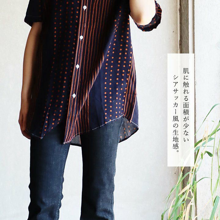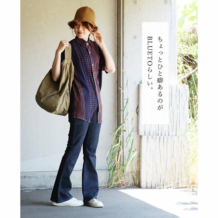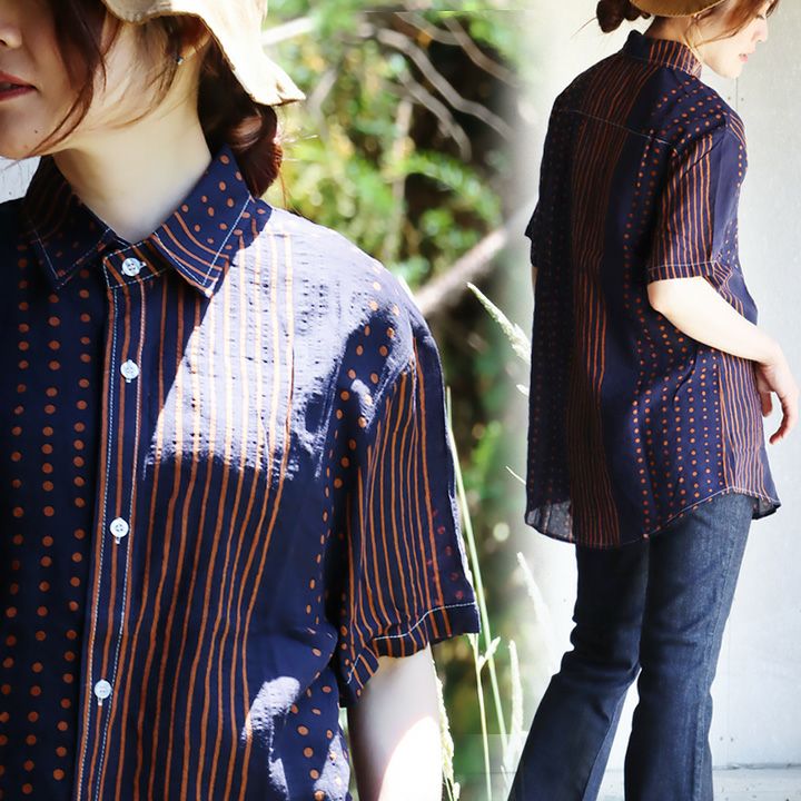 他の画像を見る 「涼しい顔で、余裕」な一着を。 【メール便50】 柄シャツ レディース 着痩せ 落ち感 涼しい 半袖 綿100% コットン 夏 薄手 軽い レトロ ドット ストライプ クレイジー お尻 隠れる カジュアル パティ BLUETO ブルート 2~3日でお届け 販売価格 ¥ 6,490 税込 カートに入れる お気に入りに登録する
