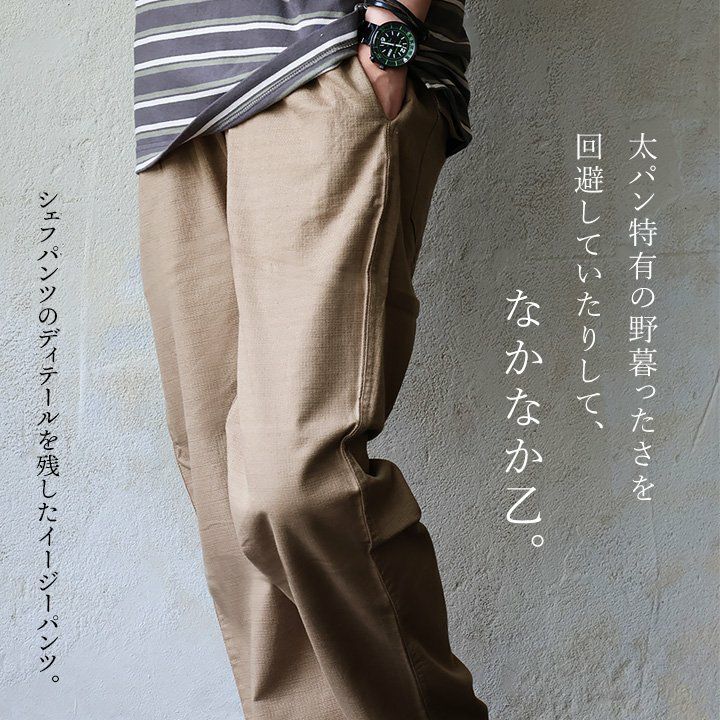 他の画像を見る 「家族にも穿かせてあげたい。」伸びて張り付かない涼感シェフSpants。 麻 パンツ シェフパンツ メンズ レディース 夏 涼しい 伸びる ストレッチ 綿麻 しっかり 丈夫 ワイド ウエストゴム イージー 黒 ヒッコリー 大きいサイズ ベルトループ 紐付き 着痩せ すっきり 体型カバー パティ Spants スパンツ 2~3日でお届け POINT5倍 販売価格 ¥ 5,390 税込 詳細を見る お気に入りに登録する