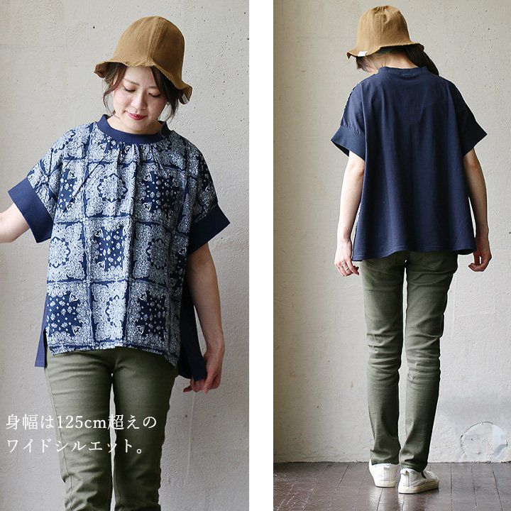 他の画像を見る たまには、柄と無地楽しむのも。 Tシャツ 半袖 レディース バンダナ柄 無地 綿100% 天竺 布帛 異素材切り替え 夏 夏服 ゆったり 体型カバー 大きいサイズ カジュアル PATY パティ Blucielo ブルチェーロ 2~3日でお届け 販売価格 ¥ 5,390 税込 在庫切れ カートに入れる お気に入りに登録する