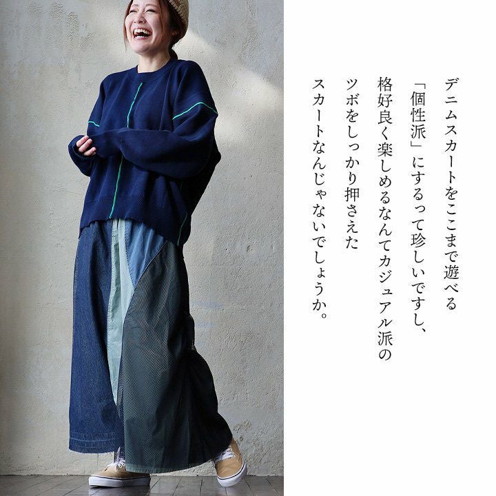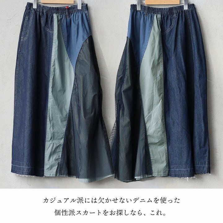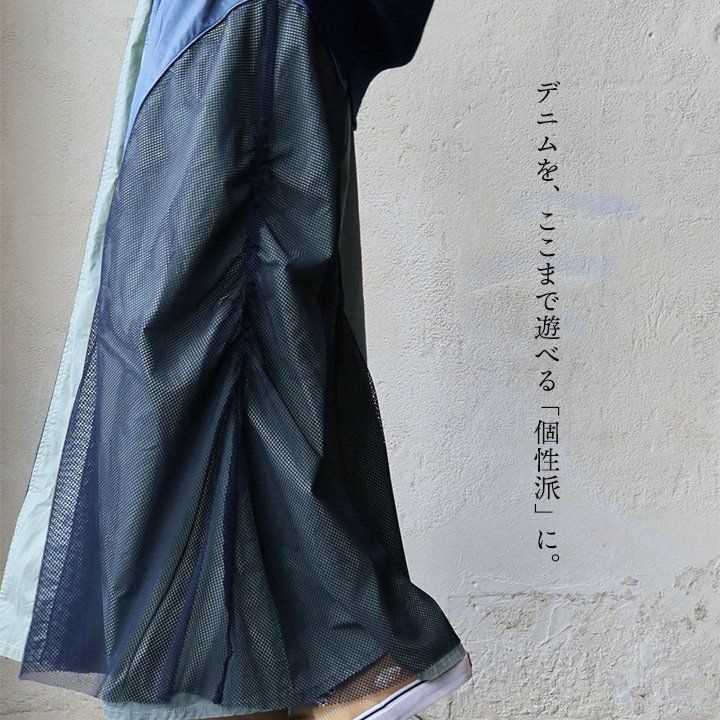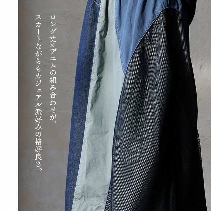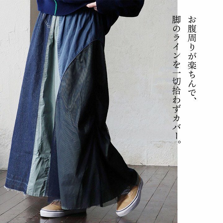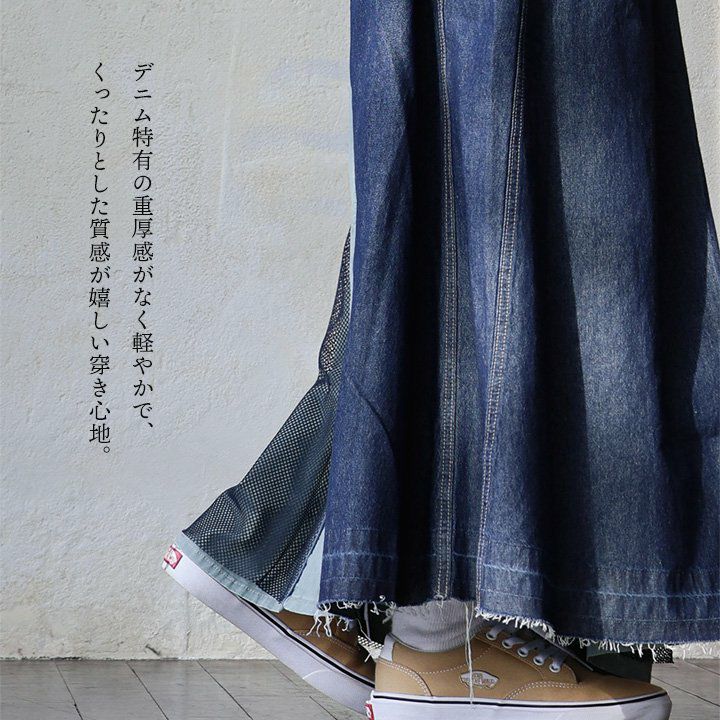 他の画像を見る デニムを、ここまで遊べる「個性派」に。 スカート ロング丈 フレア 綿100 コットン ツイル メッシュ 異素材切り替え 配色 ウエストゴム ゆったり 大きいサイズ 体型カバー カジュアル パティ 2~3日でお届け 販売価格 ¥ 9,790 税込 在庫切れ 詳細を見る お気に入りに登録する
