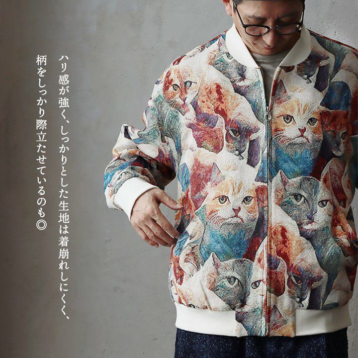 他の画像を見る つい見入ってしまう、アートのような「綺麗さ」。 ブルゾン 長袖 メンズ レディース ゴブラン織り 総柄 猫 ネコ アンティーク しっかり生地 タフ リブ切り替え 大きいサイズ 体型カバー カジュアル 秋 冬 パティ 2~3日でお届け 販売価格 ¥ 12,980 税込 在庫切れ カートに入れる お気に入りに登録する